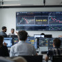 Traders analyze gold and USD data in a bright office